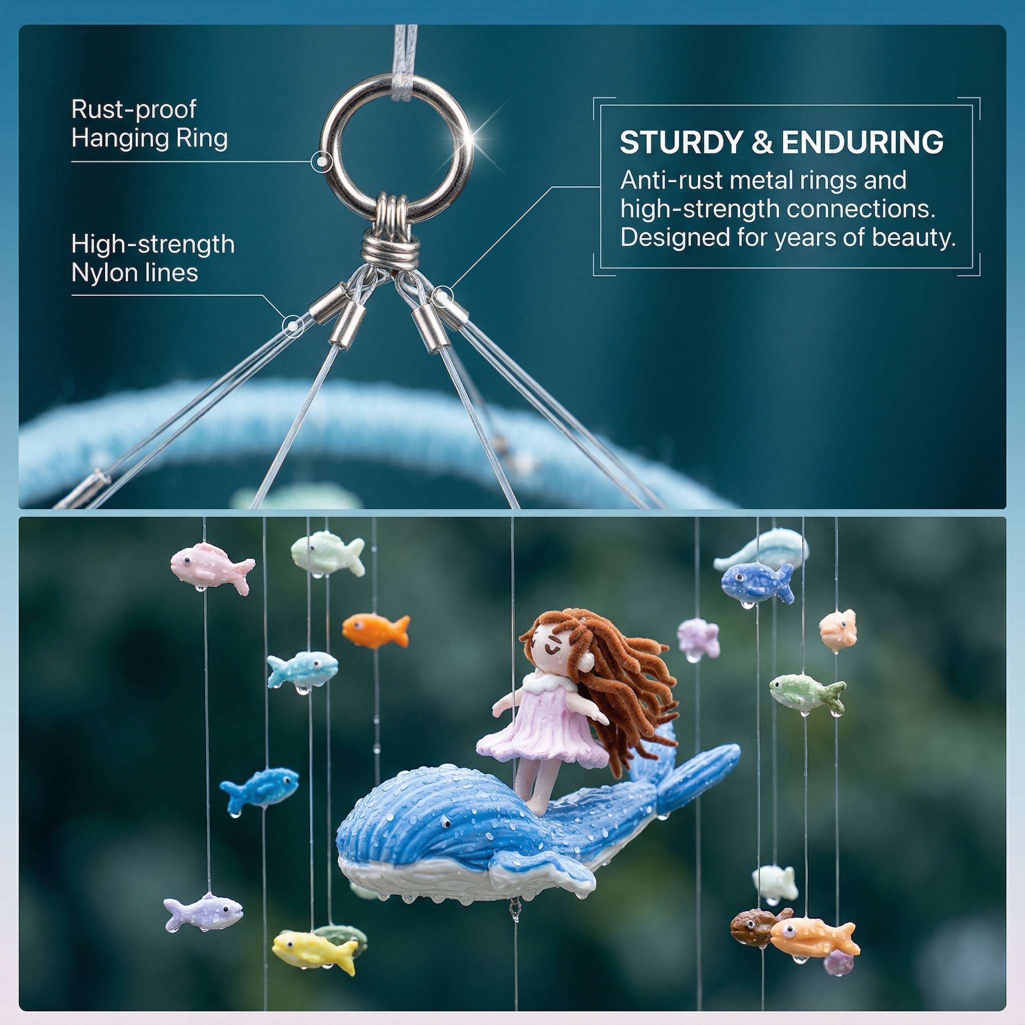 ๐ณ Handmade Whale & Girl Wind Chime โ Whimsical Ocean-Thealed Hanging Decor