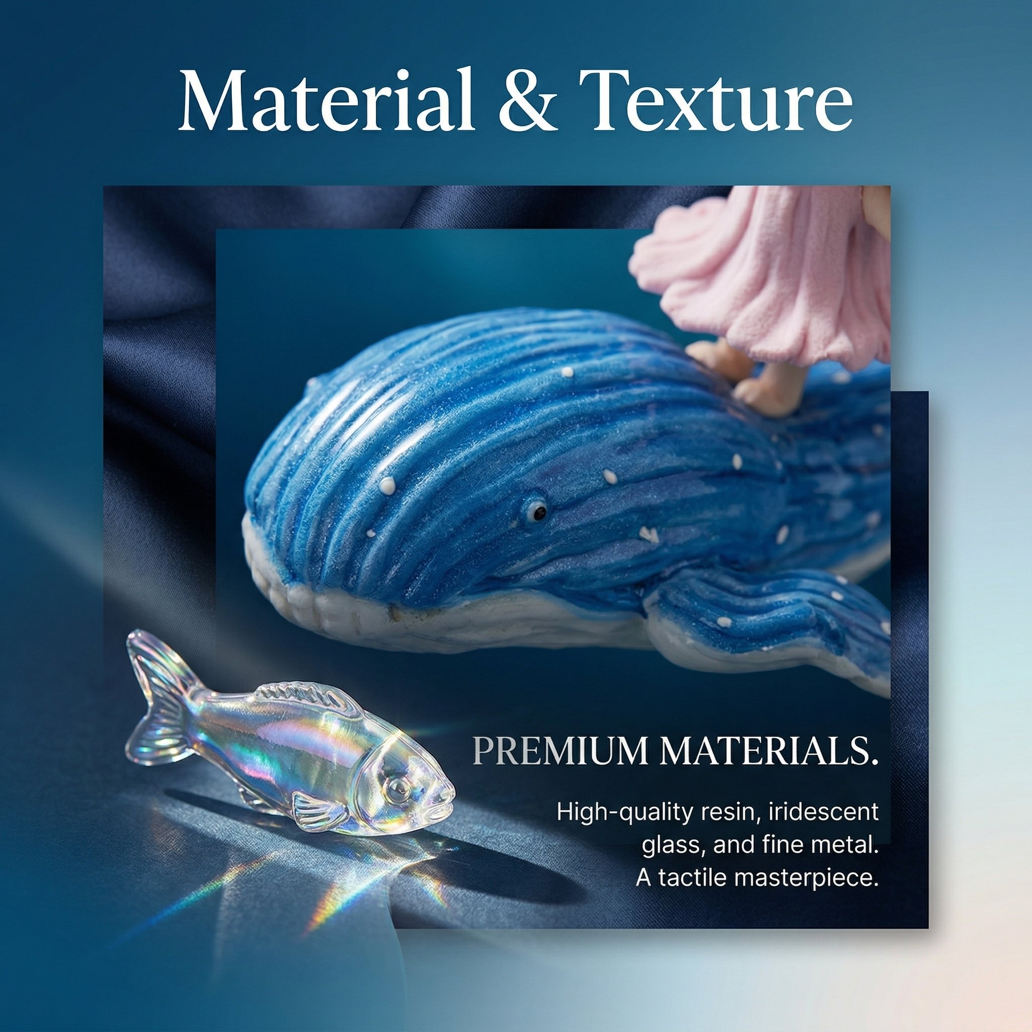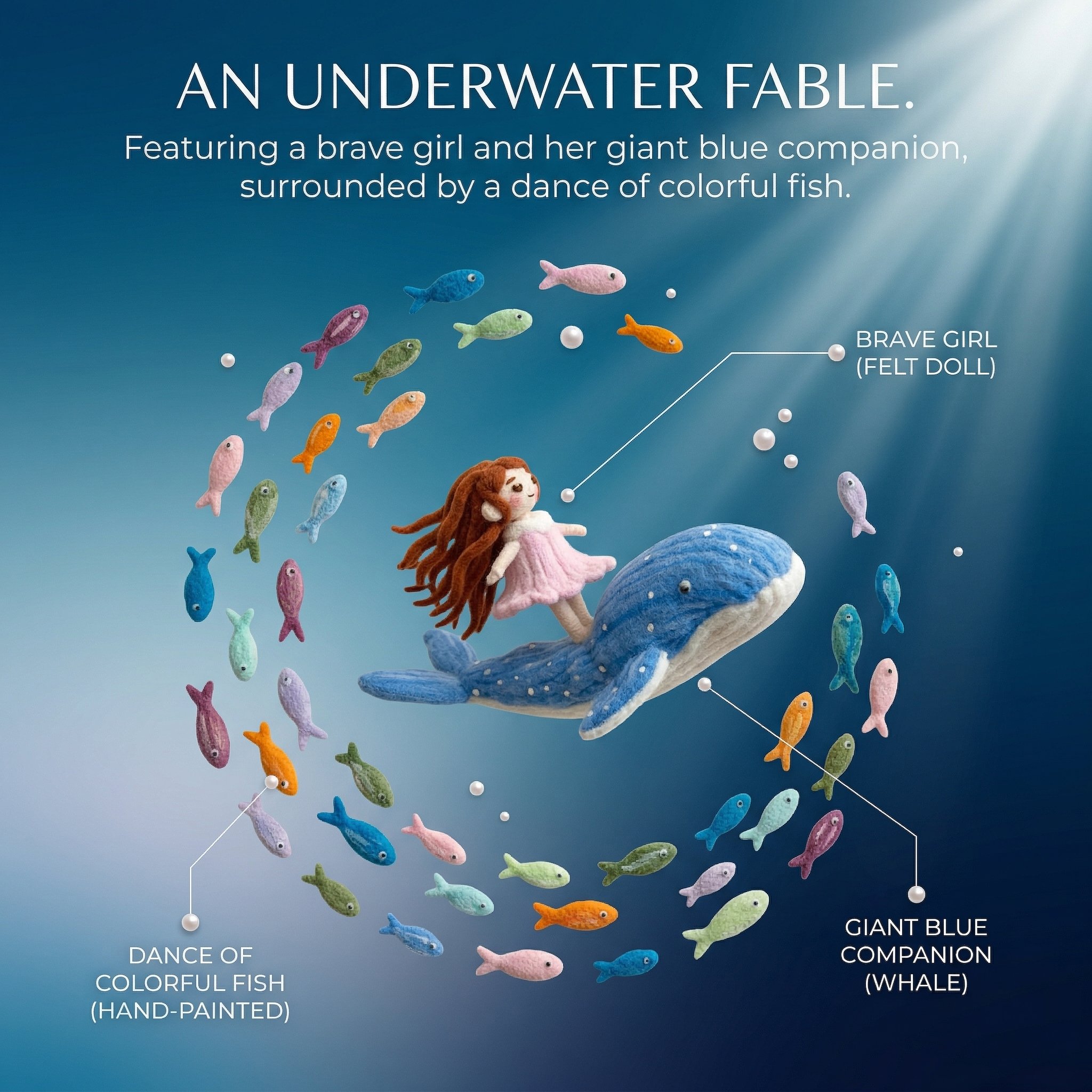 | Color Scheme | Blue (whale), Pink (dress), Multicolor (fish: blue, green, orange, purple) |